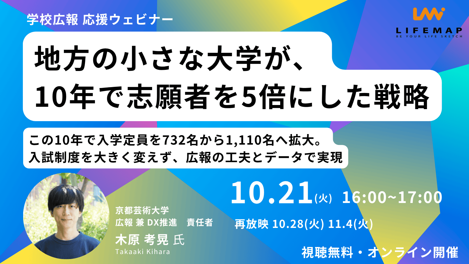 本ウェビナーでは、京都芸術大学で10年にわたり学生募集と広報改革を推進し、